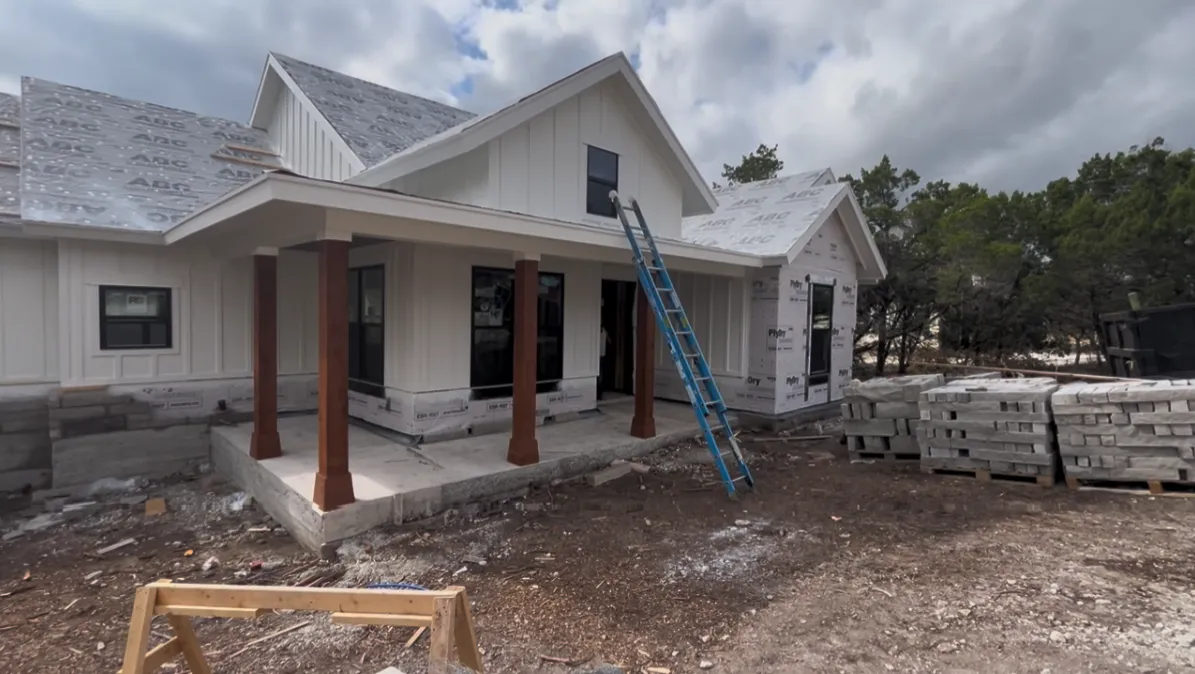 This 2,024 sq ft home is designed to fit the lifestyle of The Texas Hill Country with an open and spacious plan on an acre of land with a side entrance garage to take advantage of the wide open frontage. The Master Bedroom and the back porch overlook an expansive area behind the house with an impressive wraparound front porch. Your new home sits in the gated neighborhood of Rancho Del Lago on the northside of Canyon Lake.